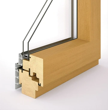 Profil EURO z vícevrstvého lepeného hranolu z exteriérové strany osazený hliníkovým opláštěním, silnější profil zaručující lepší tepelně izolační a pevnostní vlastnosti.