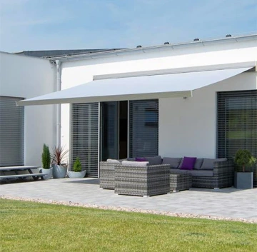 The operation of awnings is very simple. The basic type is operated by a handle. In the case of a larger number of awnings or awnings with a larger surface area, motorised control with a switch or remote control is more convenient. A wind sensor that automatically pulls the awning down in high winds to prevent damage is also a desirable accessory today. The awning can also be equipped with a light or time switch. The high quality and durability of the awning is guaranteed thanks to the components of the Swiss partner Stobag.
